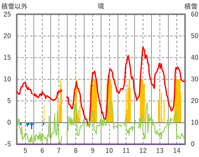 | 日 | 時 | 気温 | 降水 | 風向/風速 | 日照 | 積雪 | 降雪 |