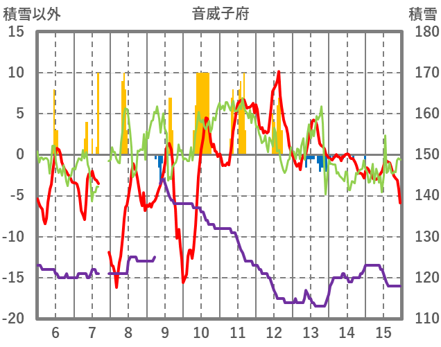 | 日 | 時 | 気温 | 降水 | 風向/風速 | 日照 | 積雪 | 降雪 |