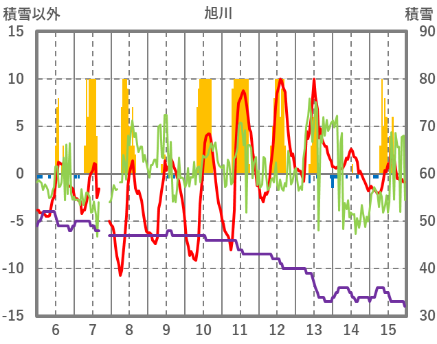 | 日 | 時 | 気温 | 降水 | 風向/風速 | 日照 | 積雪 | 降雪 |