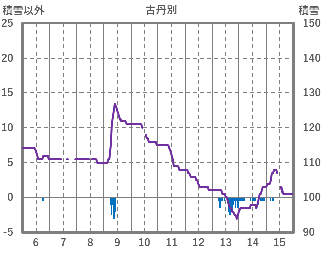 | 日 | 時 | 気温 | 降水 | 風向/風速 | 日照 | 積雪 | 降雪 |