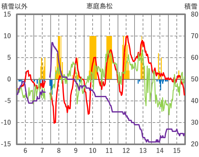 | 日 | 時 | 気温 | 降水 | 風向/風速 | 日照 | 積雪 | 降雪 |