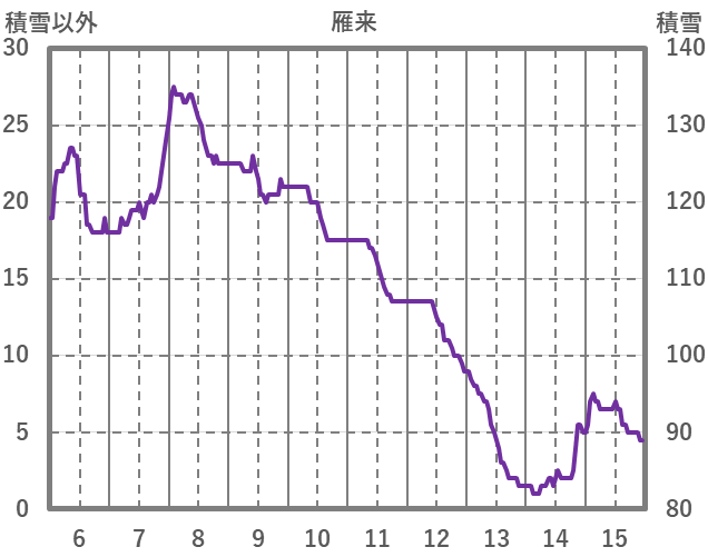| 日 | 時 | 気温 | 降水 | 風向/風速 | 日照 | 積雪 | 降雪 |