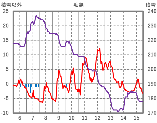 | 日 | 時 | 気温 | 降水 | 風向/風速 | 日照 | 積雪 | 降雪 |