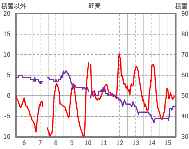 | 日 | 時 | 気温 | 降水 | 風向/風速 | 日照 | 積雪 | 降雪 |