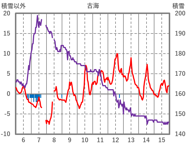 | 日 | 時 | 気温 | 降水 | 風向/風速 | 日照 | 積雪 | 降雪 |