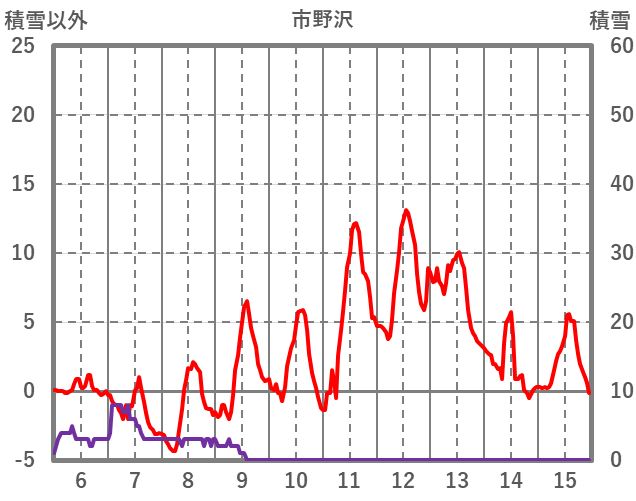 | 日 | 時 | 気温 | 降水 | 風向/風速 | 日照 | 積雪 | 降雪 |