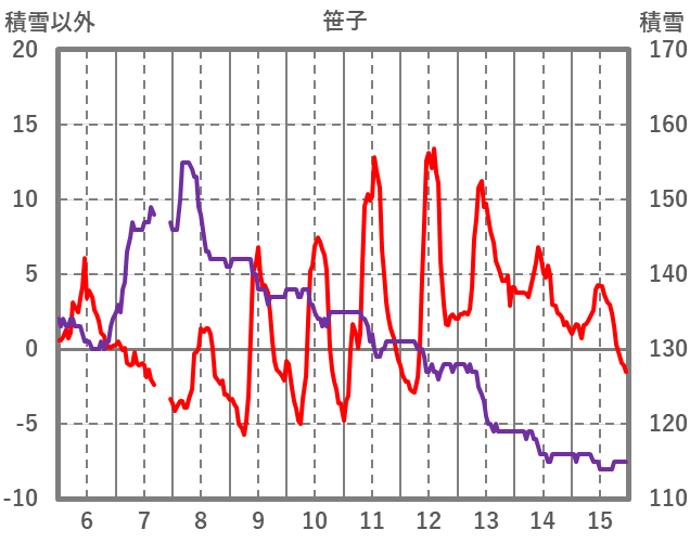 | 日 | 時 | 気温 | 降水 | 風向/風速 | 日照 | 積雪 | 降雪 |