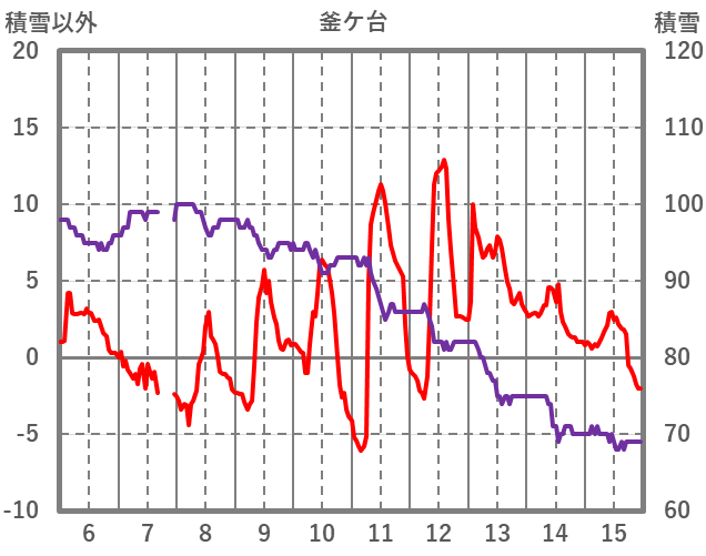 | 日 | 時 | 気温 | 降水 | 風向/風速 | 日照 | 積雪 | 降雪 |