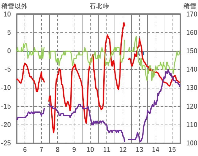 | 日 | 時 | 気温 | 降水 | 風向/風速 | 日照 | 積雪 | 降雪 |