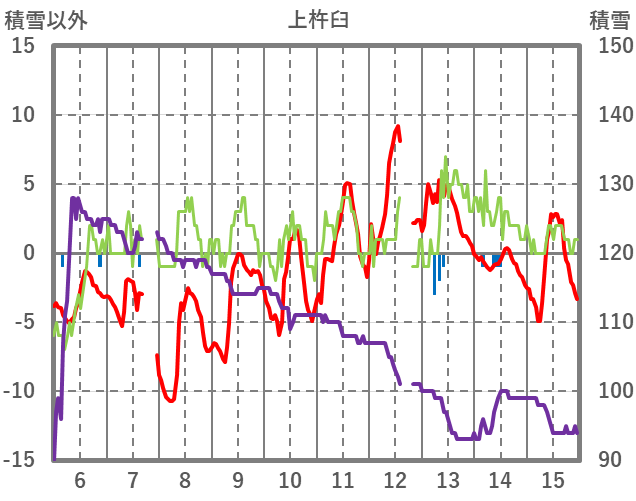 | 日 | 時 | 気温 | 降水 | 風向/風速 | 日照 | 積雪 | 降雪 |