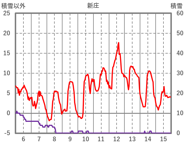 | 日 | 時 | 気温 | 降水 | 風向/風速 | 日照 | 積雪 | 降雪 |