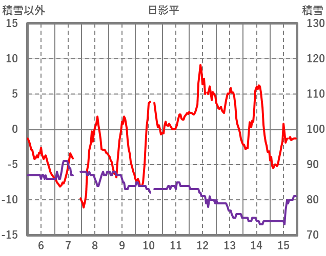 | 日 | 時 | 気温 | 降水 | 風向/風速 | 日照 | 積雪 | 降雪 |