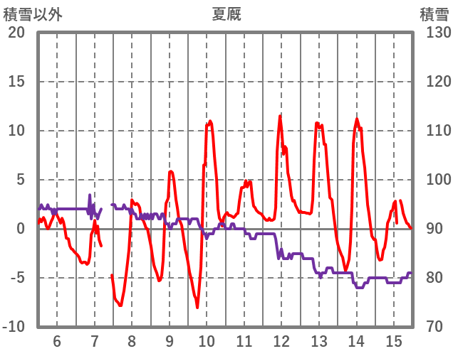 | 日 | 時 | 気温 | 降水 | 風向/風速 | 日照 | 積雪 | 降雪 |