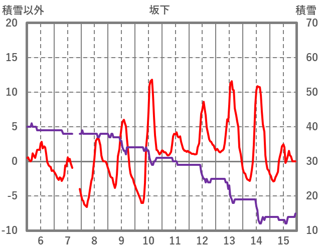 | 日 | 時 | 気温 | 降水 | 風向/風速 | 日照 | 積雪 | 降雪 |