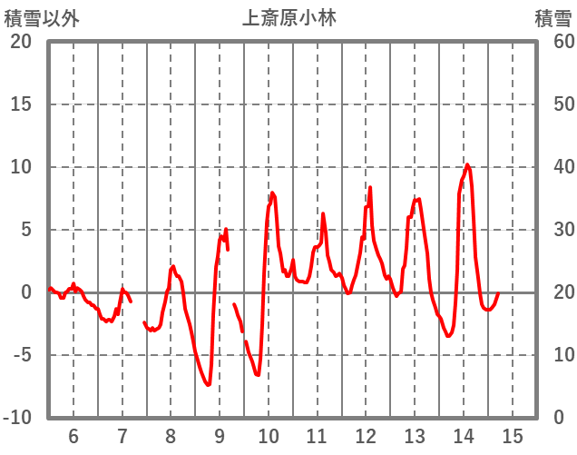 | 日 | 時 | 気温 | 降水 | 風向/風速 | 日照 | 積雪 | 降雪 |