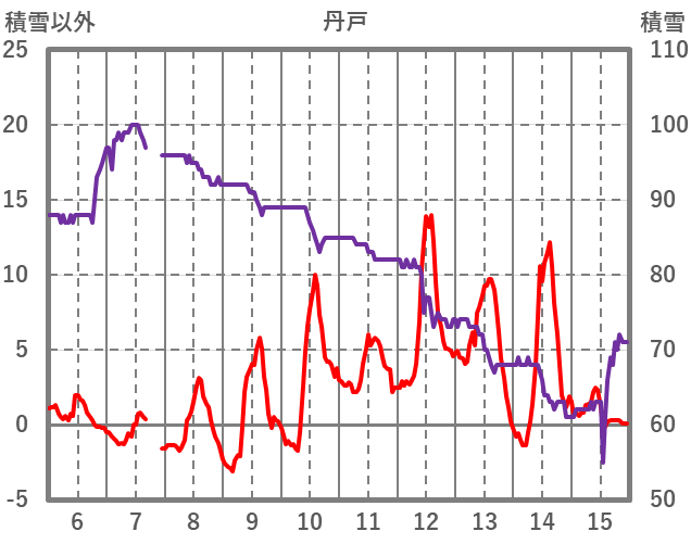 | 日 | 時 | 気温 | 降水 | 風向/風速 | 日照 | 積雪 | 降雪 |