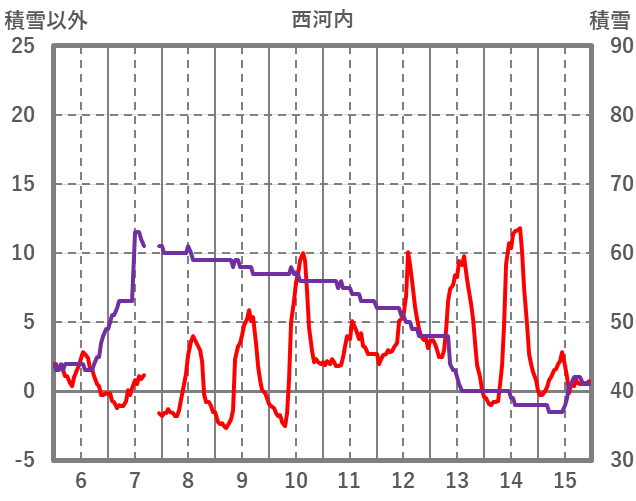 | 日 | 時 | 気温 | 降水 | 風向/風速 | 日照 | 積雪 | 降雪 |