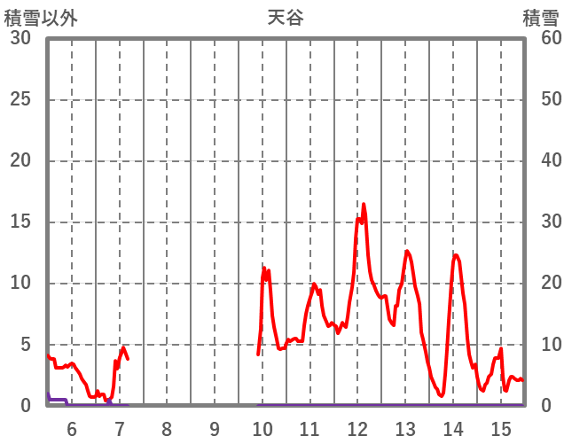 | 日 | 時 | 気温 | 降水 | 風向/風速 | 日照 | 積雪 | 降雪 |