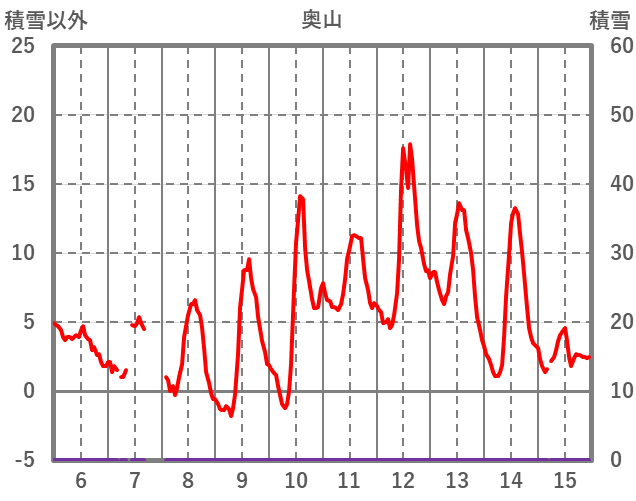 | 日 | 時 | 気温 | 降水 | 風向/風速 | 日照 | 積雪 | 降雪 |