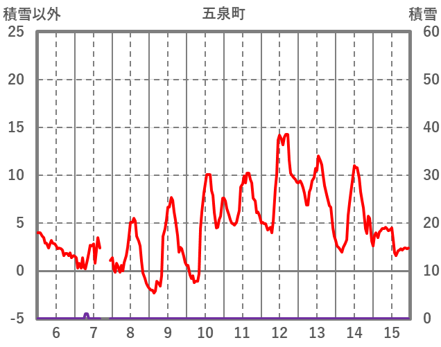 | 日 | 時 | 気温 | 降水 | 風向/風速 | 日照 | 積雪 | 降雪 |