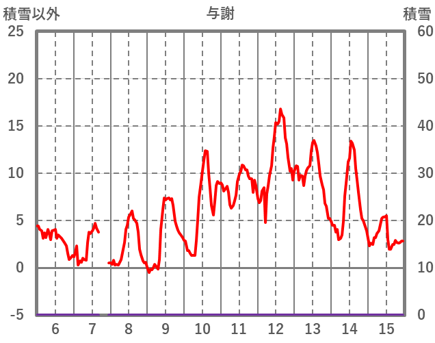 | 日 | 時 | 気温 | 降水 | 風向/風速 | 日照 | 積雪 | 降雪 |