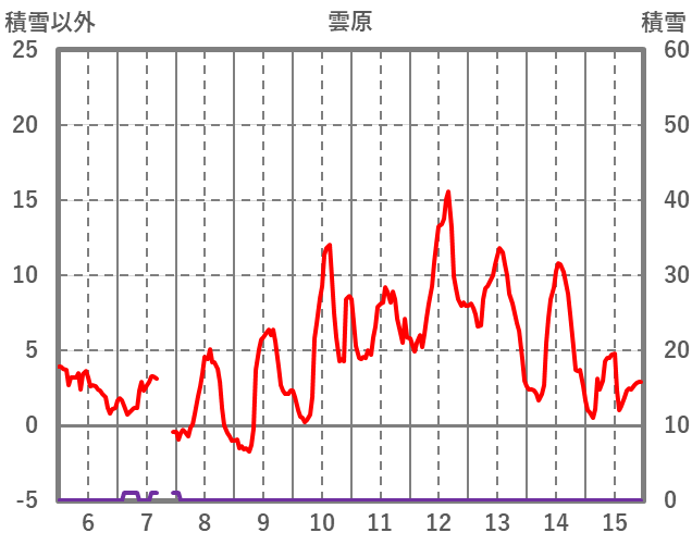 | 日 | 時 | 気温 | 降水 | 風向/風速 | 日照 | 積雪 | 降雪 |