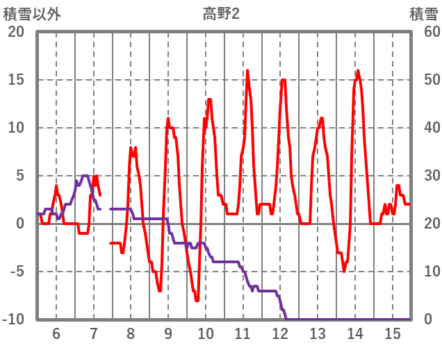 | 日 | 時 | 気温 | 降水 | 風向/風速 | 日照 | 積雪 | 降雪 |