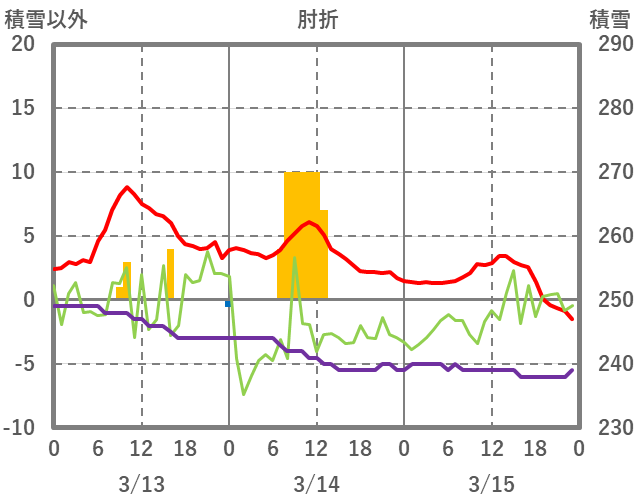 | 日 | 時 | 気温 | 降水 | 風向/風速 | 日照 | 積雪 | 降雪 |