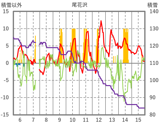 | 日 | 時 | 気温 | 降水 | 風向/風速 | 日照 | 積雪 | 降雪 |