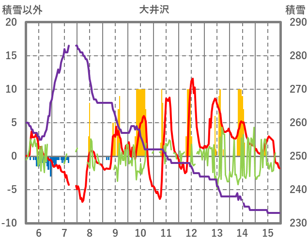 | 日 | 時 | 気温 | 降水 | 風向/風速 | 日照 | 積雪 | 降雪 |
