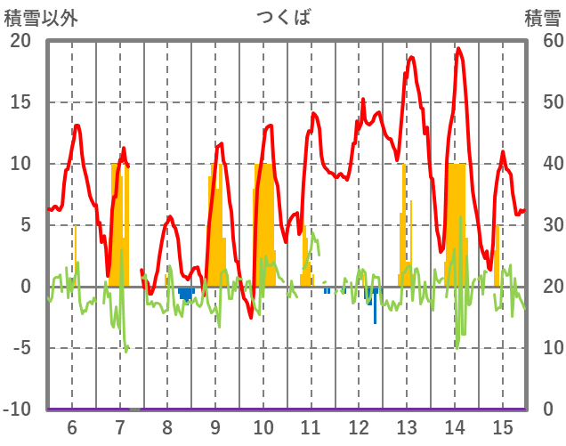 | 日 | 時 | 気温 | 降水 | 風向/風速 | 日照 | 積雪 | 降雪 |