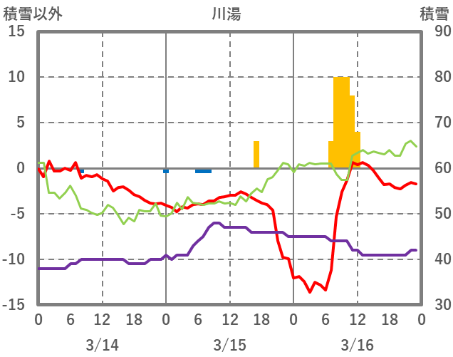 | 日 | 時 | 気温 | 降水 | 風向/風速 | 日照 | 積雪 | 降雪 |