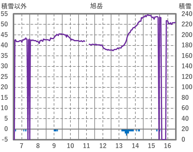 | 日 | 時 | 気温 | 降水 | 風向/風速 | 日照 | 積雪 | 降雪 |