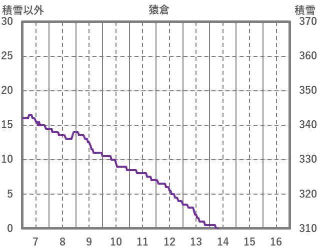 | 日 | 時 | 気温 | 降水 | 風向/風速 | 日照 | 積雪 | 降雪 |