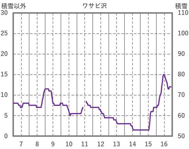 | 日 | 時 | 気温 | 降水 | 風向/風速 | 日照 | 積雪 | 降雪 |