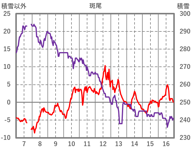 | 日 | 時 | 気温 | 降水 | 風向/風速 | 日照 | 積雪 | 降雪 |