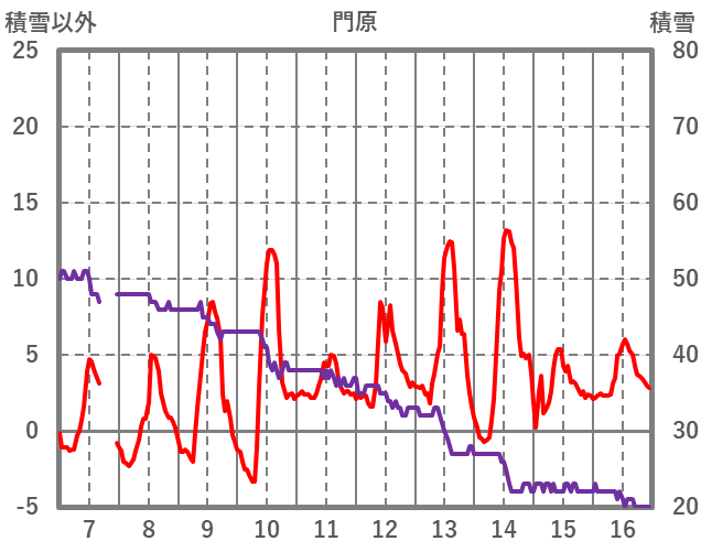 | 日 | 時 | 気温 | 降水 | 風向/風速 | 日照 | 積雪 | 降雪 |