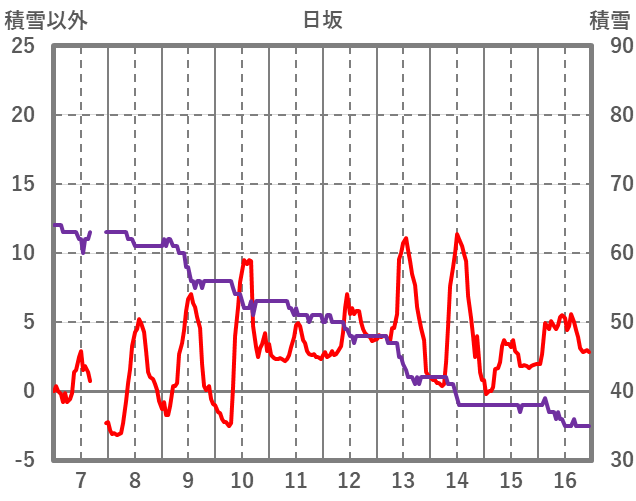 | 日 | 時 | 気温 | 降水 | 風向/風速 | 日照 | 積雪 | 降雪 |
