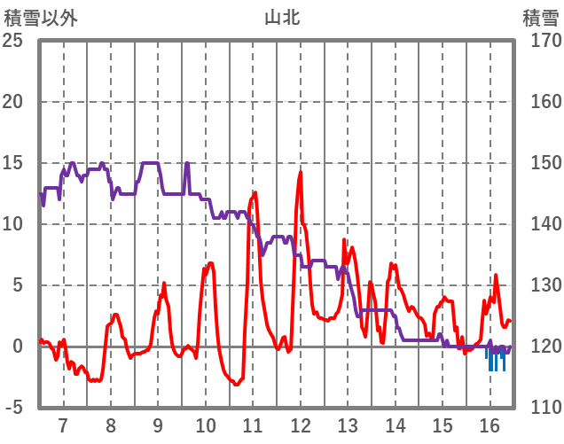 | 日 | 時 | 気温 | 降水 | 風向/風速 | 日照 | 積雪 | 降雪 |