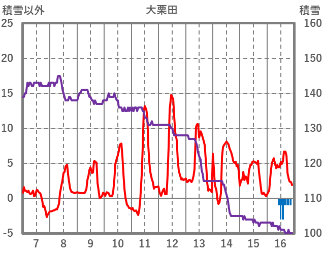 | 日 | 時 | 気温 | 降水 | 風向/風速 | 日照 | 積雪 | 降雪 |