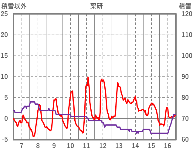 | 日 | 時 | 気温 | 降水 | 風向/風速 | 日照 | 積雪 | 降雪 |