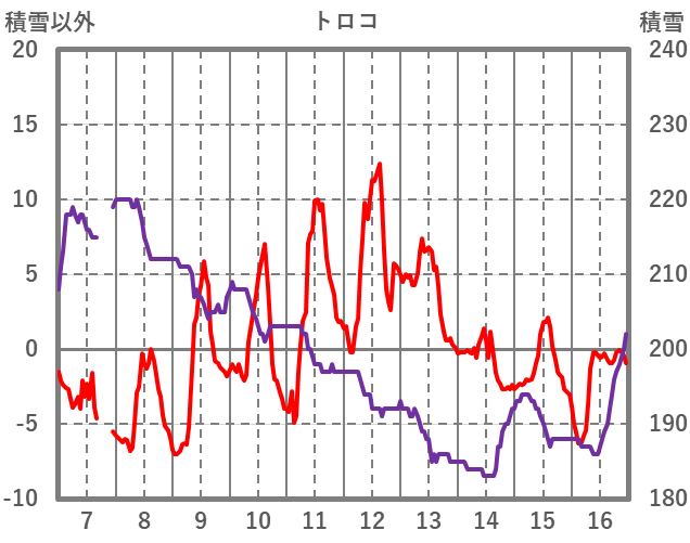 | 日 | 時 | 気温 | 降水 | 風向/風速 | 日照 | 積雪 | 降雪 |