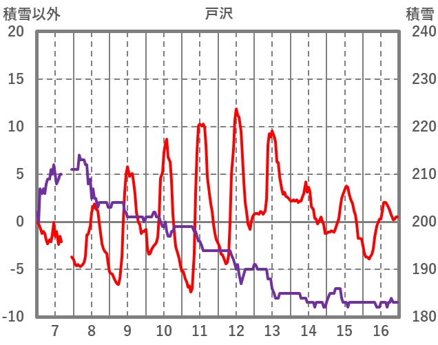 | 日 | 時 | 気温 | 降水 | 風向/風速 | 日照 | 積雪 | 降雪 |