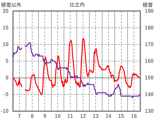 | 日 | 時 | 気温 | 降水 | 風向/風速 | 日照 | 積雪 | 降雪 |