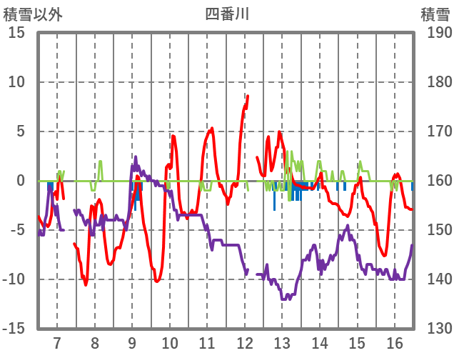 | 日 | 時 | 気温 | 降水 | 風向/風速 | 日照 | 積雪 | 降雪 |