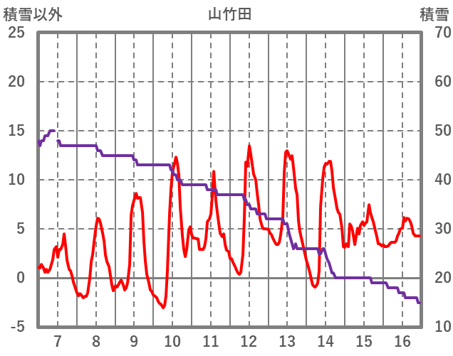 | 日 | 時 | 気温 | 降水 | 風向/風速 | 日照 | 積雪 | 降雪 |