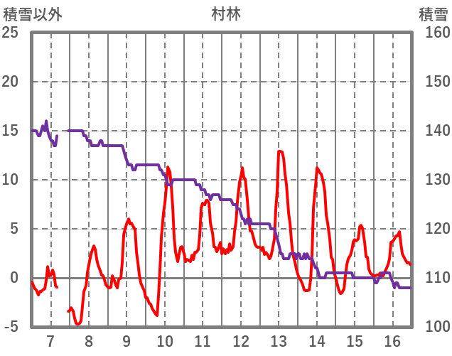 | 日 | 時 | 気温 | 降水 | 風向/風速 | 日照 | 積雪 | 降雪 |