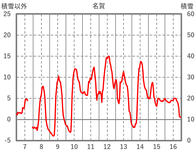| 日 | 時 | 気温 | 降水 | 風向/風速 | 日照 | 積雪 | 降雪 |