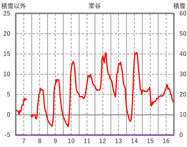 | 日 | 時 | 気温 | 降水 | 風向/風速 | 日照 | 積雪 | 降雪 |
