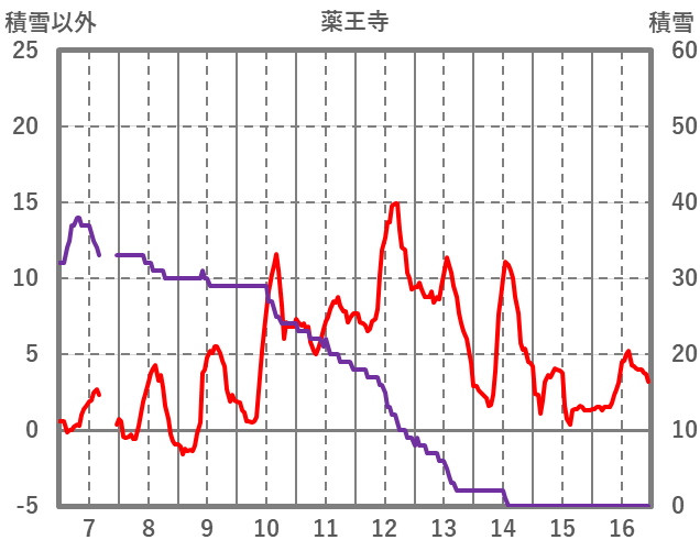 | 日 | 時 | 気温 | 降水 | 風向/風速 | 日照 | 積雪 | 降雪 |